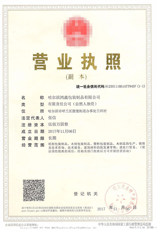 哈尔滨鸿鑫包装制品有限公司,是集产品设计、生产制作、包装服务于一体的民营企业。
